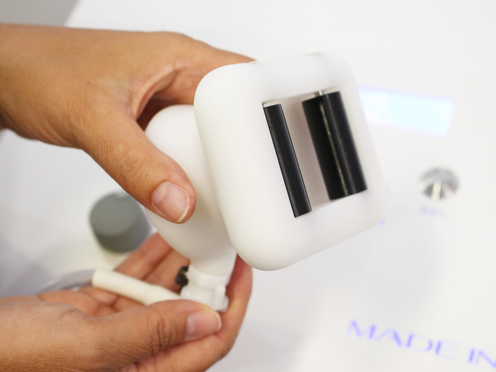 L’energia emessa è gestita attraverso appositi manipoli viso e corpo, che in maniera automatica controllano e individuano gli infrarossi emessi dal corpo nelle differenti zone, variando l’intensità a seconda della necessità di ogni singola zona in modo selettivo.